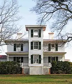 Hightower Hall (Forrest Hall) is a historic home located near McConnells, York County, South Carolina. Completed in 1856, Hightower Hall is a two-story, weatherboarded frame dwelling in a vernacular interpretation of the Italianate style.[2] The front facade features a prominent three-story tower that rises ten feet above the main roof of the house. It also has a low-pitched roof, deep eaves, decorative brackets and verandahs. Also on the property are two barns and two slave cabins.[3][4]