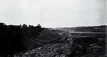 Highway 21 was the first King's Highway in Lambton County when it was assumed in 1927 between Highway 3 at Morpeth and Highway 7 at Reece's Corners.[7] The original section of highway was rebuilt from a muddy trail to a plank road around 1860. When James Miller Williams, a Hamilton businessman, set out one day during a drought to dig a well, he chose a spot downhill from an existing oil seep in the village of Black Creek. Instead of encountering water, Williams hit a shallow oil deposit. As a result of the ensuing oil boom, which would begin the petroleum industry in North America, Williams laid out the village and changed its name to Oil Springs. Two competing plank road companies were formed, the Black Creek Plank Road Company (of which Williams was a principal investor) and the Sarnia to Florence Plank Road Company, both of which aimed their roads through Oil Springs. Although both roads were constructed, the former company was more prosperous in its endeavours; in 1886, a significant portion of the Sarnia to Florence Plank Road was closed up and turned over to local property owners. The Black Creek Plank Road Company meanwhile had transformed the muddy quagmire of a path into a well-maintained road. By 1863, three miles of road south of Wyoming had been paved, and the remainder south to Oil Springs planked (the Sarnia Road followed two years later). However, as the oil boom faded, so too did improvement to the road.[8]