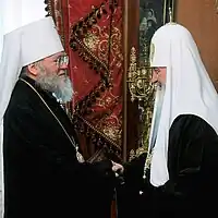 On 12 May 2008, Archbishop Hilarion was elected and elevated as the new First-hierarch of the ROCOR, having received 9 votes out of 11.[5] On 14 May of that year, he was approved by the Holy Synod of the Moscow Patriarchate to the post of the primate[6] and elevated to the rank of metropolitan. On 18 May, he was enthroned in New York City.[7][8] On 10 December 2008, he was appointed a member of the Preparatory Commission for the Local Council of the Russian Orthodox Church.[9]