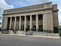 Designed in a Neoclassical architecture and Ionic style, the Hilberry is a low rise building with an estimated height of 41.55 feet and consists of two floors, as well as a basement.[9] The Hilberry has an Ionic style colonnade on the exterior of the building facing Hancock Street and its masonry is made to resemble that of marble. The exterior door frames are surrounded in classical moldings and the facade facing Cass Avenue is designed in similar manner and serves as the main entrance to the theatre.[5]