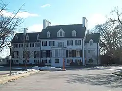 Hilton is a historic home located at The Community College of Baltimore County in Catonsville, Baltimore County, Maryland. It is an early-20th-century Georgian Revival–style mansion created from a stone farmhouse built about 1825, overlooking the Patapsco River valley. The reconstruction was designed by Baltimore architect Edward L. Palmer, Jr. in 1917. The main house is five bays in length, two and a half stories above a high ground floor, with a gambrel roof. The house has a 2+1⁄2-story wing, five bays in length, with a gabled roof, extending from the east end; and a two-story, one-bay west wing. The roof is covered with Vermont slate. The house features a small enclosed porch of the Tuscan order that was probably originally considered a porte cochere.[2]