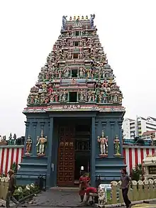 Hindu religion and culture in Singapore can be traced to the 7th century AD, when Temasek was a trading post of Hindu-Buddhist Srivijaya empire.[1] A millennium later, a wave of immigrants from southern India were brought to Singapore, mostly as coolies and indentured labourers by the British East India Company and colonial British Empire.[2][3] As with Malay peninsula, the British administration sought to stabilise a reliable labour force in its regional plantation and trading activities; it encouraged Hindus to bring family through the kangani system of migration, settle, build temples and segregated it into a community that later became Little India.[4][5]