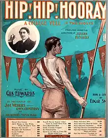 Cover of the sheet music for the song "A College Yell" from the 1907 musical Hip! Hip! Hooray!