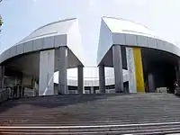 The Hiroshima City Museum of Contemporary Art (広島市現代美術館, Hiroshima-shi Gendai Bijutsukan) is an art museum founded in 1989. It is in Hijiyama Park in Hiroshima, Japan. The building was designed by architect Kisho Kurokawa.[3] It was the first public contemporary art museum to open in Japan,[4] and its exhibitions focus on post-1945, contemporary emerging artists and artworks that link contemporary art with Hiroshima.[5]