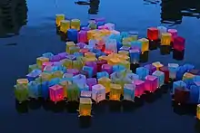 In the evening of the same day, a Lantern ceremony is held to send off the spirits of the victims on lanterns with peace messages floating on the waters of the Motoyasu River.[16]