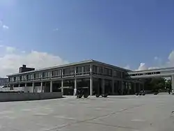 The former Nakajima District, which today is Peace Memorial Park, was a prominent business quarter of the city during the early years of the Showa period (1926–89) and had been the site of many wooden two-story structures. However, in 1929, the three-story Taishoya Kimono Shop was constructed, surrounded by shops and movie theaters.[12] It was said that if you went up to the roof, a panoramic view of the city awaited. In 1943 the Kimono Shop was closed and in June 1944, as World War II intensified and economic controls became increasingly stringent, the building was purchased by the Prefectural Fuel Rationing Union.