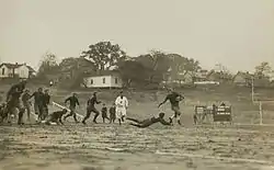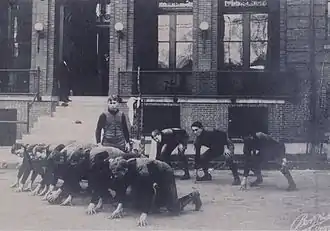 University of Alabama law student William G. Little learned how to play American football while attending prep school in Andover, Massachusetts and began teaching the sport to fellow Alabama students in early 1892.[2] Later in the year, the school formed an official team of 19 players, with Little as captain and E. B. Beaumont as head coach.[3] Among those also on the team were William B. Bankhead, future U.S. Speaker of the House, and Bibb Graves, future governor of Alabama.[4] The team was referred to as the "Cadets", the "Crimson White", or simply as "the varsity".[3][5] On November 11, 1892, the team played its first game at a baseball park in Birmingham, Alabama, winning 56–0 against a team composed of players from local Birmingham-area high schools.[3] Alabama lost to both Auburn and Sewanee in 1893.