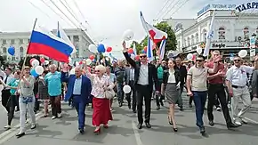 Crimea experienced two severe famines in the 20th century, the Famine of 1921–1922 and the Holodomor of 1932–1933.[40] A large Slavic population (mainly Russians and Ukrainians) influx occurred in the 1930s as a result of the Soviet policy of regional development. These demographic changes permanently altered the ethnic balance in the region.