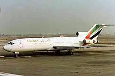 In the mid-1980s, Pakistan International Airlines played a large role in establishing the Emirates airline by providing technical and administrative assistance to the new carrier as well as gifting a new Boeing 737-300 and an Airbus A300B4-200.[3] The Royal Family's Dubai Royal Air Wing also provided the airline with two used Boeing 727-200 Adv.[4] The airline's first flight, flight EK600, was from Dubai, UAE to Karachi, Pakistan on 25 October 1985.[4]