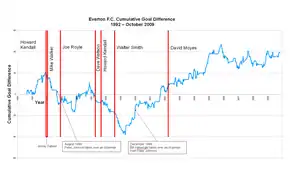 Former Everton player Howard Kendall returned to the club as manager for the 1981–82 season, having won promotion from the Third Division with Blackburn Rovers and taken them within a whisker of a second successive promotion. Kendall's reign got off to a promising start with a 3–1 win over Birmingham City on the opening day of the season,[22] and they finished eighth in the First Division.[23] Their steady progress continued into 1982–83, as they finished seventh and only narrowly missed out on a UEFA Cup place.[24] The only real letdown that season was a 0–5 home defeat by Liverpool on 6 November 1982.[25]