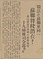 The left-wing group took the lead in the press by first taking control of the facilities for printing newspapers. The leading left-wing newspapers were The Chosun Ilbo and the Liberation Daily.[22]