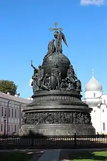 Through the defections of some princes, border skirmishes, and a long war with the Novgorod Republic, Ivan III was able to annex Novgorod and Tver.[59] As a result, the Grand Duchy of Moscow tripled in size under his rule.[51] During his conflict with Pskov, a monk named Filofei (Philotheus of Pskov) composed a letter to Ivan III, with the prophecy that the latter's kingdom would be the Third Rome.[60] The Fall of Constantinople and the death of the last Greek Orthodox Christian emperor contributed to this new idea of Moscow as New Rome and the seat of Orthodox Christianity, as did Ivan's 1472 marriage to Byzantine Princess Sophia Palaiologina.[51]