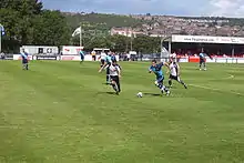 Events off the pitch soon affected the club. In the autumn and winter of 1913 a major industrial dispute in the furniture trade in High Wycombe saw workers locked out and attendances were seriously affected. However, far more serious events were taking place in Europe and the First World War soon broke out. Wycombe players joined the two companies of Territorials and the Bucks Battalion. Loakes Park was used for training artillerymen and the club ceased to be active for the duration of the war. The club and football began to organise itself again and in the summer of 1919 the club held its AGM at the Red Lion Hotel and all stood for those who had lost their lives in the First World War. They included the following players; Charlie Buchanan, George Buchanan, Pat Carter, Bunny Fowler, Frank Langley, Jock Love, Jim McDermott, Edward Reynolds, A Saunders and Harry Stallwood.[7]