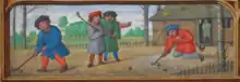 In the 1261, Middle Dutch manuscript of the Flemish poet Jacob van Maerlant's Boeck Merlijn mention is made of a ball game "mit ener coluen" (with a colf/kolf [club]). This is the earliest known mention in the Dutch language of the game of colf/kolf as played in the Low Countries.[6][7]