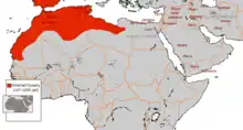 Medieval events in Ifriqiya and al-Maghrib often have tribal associations. Linked to the Kabyle Sanhaja were the Kutama tribes, whose support worked to establish the Fatimid Caliphate (909–1171, only until 1049 in Ifriqiya); their vassals and later successors in Ifriqiya the Zirids (973-1160) were also Sanhaja.[64] The Almoravids (1056–1147) first began far south of Morocco, among the Lamtuna Sanhaja.[63] From the Masmuda came Ibn Tumart and the Almohad movement (1130–1269), later supported by the Sanhaja. Accordingly, it was from among the Masmuda that the Hafsid dynasty (1227–1574) of Tunis originated.[62][65][66]