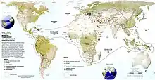 The Philippine–American War (1899–1902) was an armed conflict between a group of Filipino revolutionaries and the American forces following the ceding of the Philippines to the United States after the defeat of Spanish forces in the Battle of Manila. The Army sent in 100,000 soldiers (mostly from the National Guard) under General Elwell Otis. Defeated in the field and losing its capital in March 1899, the poorly armed and poorly led rebels broke into armed bands. The insurgency collapsed in March 1901 when the leader Emilio Aguinaldo was captured by General Frederick Funston and his Macabebe allies. Casualties included 1,037 Americans killed in action and 3,340 who died from disease; 20,000 rebels were killed.[36] The war resulted in at least 200,000 Filipino civilian deaths, mostly due to famine and disease.[37] Some estimates for total civilian dead reach up to a million. Atrocities were committed by the U.S. during the conflict, including reprisals, scorched earth campaigns, and the forcible relocation of many civilians.[38][39][40][41]