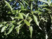 Hoheria sexstylosa, the long-leaved lacebark or ribbonwood, is a species of flowering plant in the family Malvaceae, endemic to New Zealand. It is an evergreen tree or shrub growing to 8 m (26 ft) tall by 6 m (20 ft) broad with glossy green leaves, and white flowers in summer and autumn.[2][3] The Latin specific epithet sexstylosa means "six styles".[4]