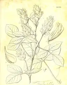Hoita strobilina is a rare species of legume known by the common name Loma Prieta leatherroot, or Loma Prieta hoita. It is endemic to California, where it is known from occasional occurrences in the San Francisco Bay Area. It grows in chaparral and woodland habitat in the local mountains, often on serpentine soil. This is a perennial herb growing erect, approaching a meter in maximum height. The large leaves are divided into three leaflets each up to 8 centimeters long and lance-shaped to nearly round. The herbage is generally glandular and hairy. The inflorescence is a raceme up to 13 centimeters long containing many pealike flowers. Each flower is purple, sometimes with white parts, and one to two centimeters long. The fruit is a dark brown or black, hairy, veiny legume pod.