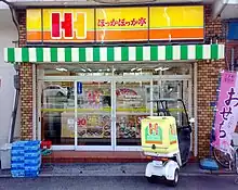 Hokka Hokka Tei (ほっかほっか亭, lit. "Hot Hot Shop") is a bento take-out chain with over 2,000 franchises and company-owned branches throughout Japan. It offers a variety of dishes, generally over rice, at relatively low price. Unlike competitors such as Yoshinoya beef-bowl and the various cheap curry establishments, there are no chairs or counters for inside-dining.