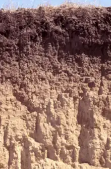 In soil taxonomy, its full description is a "Holdrege silt loam, fine-silty, mixed, mesic, Typic Argiustoll".[1] Holdrege silt loam covers 1.8 million acres of land in south-central Nebraska, under a grass landscape. Good drainage and moisture movement resulted in the downward movement of clay and lime. First described in 1917 in Phelps County, Nebraska, the soil has a significant role in corn, grain and soy farming. Formed in silty, calcareous loess, the soil ranges from 0 to 15 percent slope.[2][3]