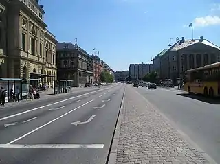 The new street was inaugurated in 1864. It was the first street in Copenhagen to be installed with pavements and individually numbered houses.[3]