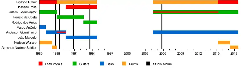 | Past members | Marco Antônio (bass) Nedson Warfare (drums) Rodrigo Führer (drums, vocals) Armando Nuclear Soldier (drums) Renato da Costa (guitar) João Marcelo (bass) Rossano Polla (vocals) Rodrigo dos Anjos (guitar) |