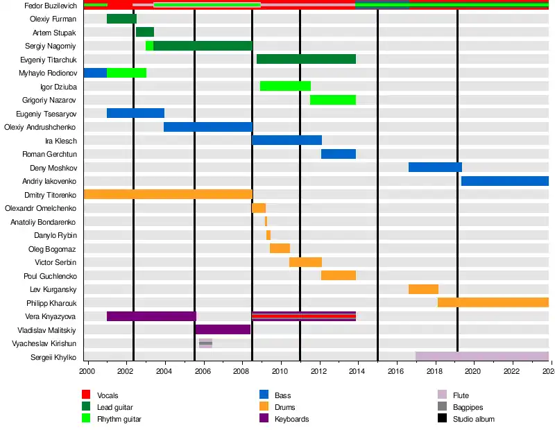 - Vera Knyazyova – keyboards, vocals (2001–2005, 2008–2013), lead vocals, bagpipes (2008–2013)