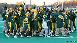 Holy Cross High School is well known in Connecticut for its football program. In 2006, the team won the first football state championship in the school's history, the Class SS State Championship, defeating Stratford 40–0. They were ranked third among all teams in the state, following Greenwich and Ansonia. In 2011 the Crusaders earned their second state championship with a 34–27 win over Cromwell in the Class S State Championship. The 12-2 Crusaders suffered only two defeats that season, both to Ansonia, the Class M State Champion. They finished ranked eighth in the state.[4]