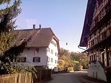 There are seven sites in Hombrechtikon that are listed as Swiss heritage sites of national significance. The houses in the town include; the Hof Oberhaus at Seestrasse 2&4, the Hürlimannhaus at Lützelsee 2&4, the Landstiz Rosenberg at Alte Landstrasse 1&3, the Menzihaus at Lützelsee 3 and the Eglihaus at Lutikon 1-3. The town's Reformed church is also on the list. The neolithic and early Bronze Age settlement at Feldbach is the last site on the list. The entire hamlet of Lützelsee and the Feldbach area are part of the Inventory of Swiss Heritage Sites.[7] The prehistoric settlement Seegubel at Feldbach is part of the Prehistoric Pile dwellings around the Alps, a UNESCO World Heritage Site.[8]