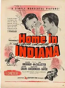 Home in Indiana is a 1944 Technicolor film directed by Henry Hathaway. The film, that stars Walter Brennan, Lon McCallister, Jeanne Crain, June Haver and Charlotte Greenwood, is based on the novel The Phantom Filly by George Agnew Chamberlain (1879–1966). The film was remade in 1957 as April Love.