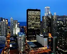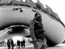 The music video features a monochromatic montage of West wandering throughout the many different areas of Chicago, with slow-motion shots and angles highlighting the city's streets, buildings, monuments and citizens.[110] Among the several various locations and landmarks that he visits and are shown include the Cloud Gate sculpture at Millennium Park, DuSable Museum of African American History, Tribune Tower, Jay Pritzker Pavilion, Sears Tower, and the Cabrini–Green and Harold L. Ickes housing projects.[9] Some of West's old friends, early supporters of his music, and local hip-hop acts such as L.E.P. Bogus Boys can be seen following him around the city.[9][110] Most notably, his friend, label affiliate and fellow Chicago rapper Common, who is referenced during the song, makes two cameo appearances.[22] Throughout the video, these scenes are interspersed with animated silhouette outlines and shots of West rapping the song's verses while surrounded by reflective mirrors on top of a moving vehicle and Chris Martin singing the chorus while playing an upright piano.[110][113]