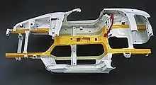 Introduced at the 1995 Tokyo Motor Show,[4][5] the Honda Sport Study Model concept car was the design study for the production version of the S2000. The inspirations for the concept car were the first prototype Honda Formula One racing car, the Honda RA270 from 1963[6][7] and the Caterham Seven.[7] The SSM was a front-mid engine rear-wheel-drive roadster powered by a 2.0 L (122 cu in) inline five-cylinder engine. It featured a rigid 'high X-bone frame' which Honda claimed improved the vehicle's rigidity and collision safety.[8] The concept car was constructed with aluminum body panels and featured a 50:50 weight distribution.[9] The SSM was designed by Honda's own staff, should not be confused with the Argento Vivo roadster concept designed by Pininfarina, introduced same year and powered by a Honda in-line five cylinder engine as well.[10]