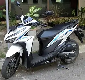 The Honda Vario (also known as the Honda Click in some Southeast Asian countries) is a scooter produced by Astra Honda Motor in Indonesia since 2006. This scooter is intended to anticipate the increasing population of automatic scooters circulating in the Indonesian motorcycle market.[2] The Vario has appeared in various variants with engine capacities ranging from 108.0 cc (6.59 cu in) to 157.0 cc (9.58 cu in).