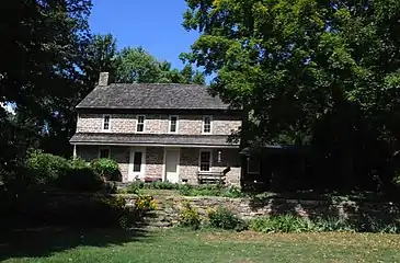The Honey Hollow Watershed is located in Solebury Township, in a rural area west of the town of New Hope. It is bounded on the northeast by Sugan Road, and is roughly bisected by Creamery Road, with its western and southern bounds defined by the ridgeline that separates Honey Hollow from an adjacent watershed. To the northwest it is also bounded by a ridge that runs parallel to and northwest of Upper York Road. The area historically consisted of five farms totaling about 650 acres. The landscape of the farmland in this area retains features established in the 1930s, including contour-plowed fields, terracing, and water runoff diversion ditches.[4]