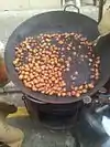 ![]() | Chestnuts are stir-fried with black sand and sugar in a wok. |