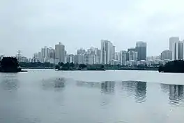 Hongcheng Lake (Chinese: 红城湖) is a lake in Haikou, Hainan, China. It was renovated around 2017 to 2018.[1] It has three islands. Two small, and one, at the west side, is larger with short bridge access and an old, dilapidated building on it.