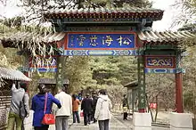 The Hongluo Temple (Chinese: 红螺寺; pinyin: Hongluo Si) is one of the largest and most extensive Buddhist temples located in northern Beijing.[1] It was first established during the Tang Dynasty (618-907 AD);[1] however, it was rebuilt many times later, notably during the Ming Dynasty.[2] The temple is located at the southern foot of the Hongluo Mountain, and covers an area of 7 hectares (17 acres).[1] Its name, Hongluo Temple is also translated as Red Snail Temple.
