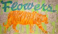 Until then Keining’s work had been characterized by the well-thought-out processing of specific subject areas (series, work groups). From this point on, however, he created instead individual pictures that combined in different ways elements such as flowers, animals, ornaments, but also comics and advertisements from the 1950s. Again and again script appeared as an element of the pictures. Keining used several slides projected one after another onto the canvas for the composition of the pictures. Some portions of the pictures are characterized by sprayed paint, others by brushed paint. The overlay of the portions leads to the impression of two or more visual levels in the pictures; e.g., the sharp silhouette of painted script stands out in front of a sprayed blurred ornament in the background. As the sprayed application of paint already blurs the contours more or less, the overlay of portions of the pictures increases the blur. This approach elicits great ambiguity undermining definitive interpretations.