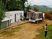 A Clinic In A Can is a self-contained medical clinic built in a shipping container. These clinics are built in the US and shipped around the world, providing an important resource for medical relief in the face of disaster or in areas with poor infrastructure.[4]
