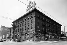 In March 1925, plans for the four-story store and hotel building were prepared for Karl Elliot by Architects Walker & Eisen. It was projected to cost $200,000 and would have stores on the first floor, with a hundred rooms on the upper floors. In 1931, it was selected as the official hotel for Stanford University alumni, as well as the University of Southern California and the University of California Los Angeles.