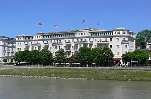 With the beginning of the Salzburg Festival, the "Austrian court" became the social centre of the festival with the three stars, Max Reinhardt, Hugo von Hofmannsthal and Richard Strauss, and the artists playing a part, living next door in the hotel to the heads of the European and overseas society.