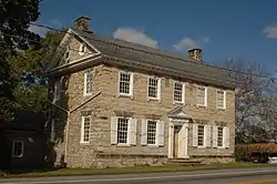 Built in 1783, his historic structure is a 2+1⁄2-story, limestone dwelling with red sandstone accents, and was designed in the Georgian style. A rear kitchen addition dates to the mid-nineteenth century. It has a high-pitched gable roof and features a small portico that is supported by Doric order columns and pilasters.[2]