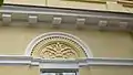 The facade of the house decorates the modeled drawing. The porch of the house is created with three columns. The house is the two-storeyed, ground first-floor. All facade occupies a squared pediment which settles down over the crowning eaves with croutons. Windows of the first floor decorate capstones. Over windows of the second floor the vegetable ornament is created, and under windows — false rail-posts are made.[2]