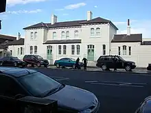 In 1893, coinciding with the first renaming, a new building was provided to the west. This contains the current ticket office and other station facilities. A large steel and glass porte-cochere stands outside at an angle, sheltering the taxi rank, forecourt and entrance area. This was moved from London Victoria following rebuilding works there which had rendered it redundant.