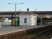 There are three running lines through the station, on which – numbered from north to south - island platform faces 1 and 2 can be (and are) used for any combination of arrival or departure, whilst southernmost platform 3 (where the main entrance, ticketing facilities and newspaper shop are found - see photo of building taken from Goldstone Villas, to the south) cannot be used for eastbound arrivals from the West Coastway or departures towards London in the up direction.