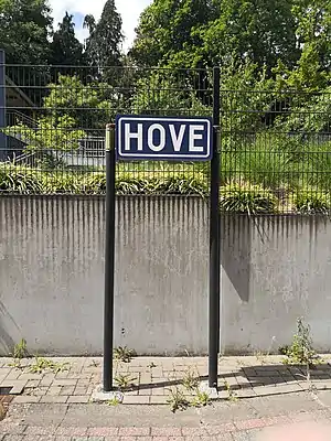 Hove is a railway station in Hove, just south of the city of Antwerp, Antwerp, Belgium. The station opened in 1888 on the Line 25 and Line 27.