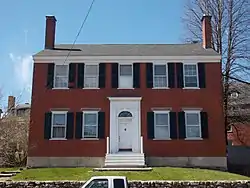 The first of the How houses to be built is the Daniel How House at 23 Danforth Street. Built in 1799, it is a 2+1⁄2-story brick building, trimmed with granite, and featuring a Doric entrance portico. It was built by Daniel How, a native of Methuen, Massachusetts, on land belonging to his father-in-law. The second house, that of Daniel's son John, was built by Daniel as a wedding present for his son in 1817. It stands at 40 Pleasant Street, and has similar Federal styling to the father's house. Its entrance is recessed in an archway, with sidelight and fanlight transom windows. The third house, a double house at 30–32 Pleasant Street, was built in 1818 by Daniel's brother Joseph. It is three stories in height, built of brick with granite trim like the others, and has entrances styled similar to those of John's house.[2]