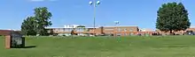 In 1938, Howard County used WPA money and bus contracts to close and consolidate many one-room schoolhouses into several central schools. Most of the county saw little school construction until after World War II. The school board recommended a single central high school for all white students in the county. By 1949, a state bond bill seemed imminent, and plans were refined for a central high school serving the first, second and sixth county districts.[2] A site was picked at the family farm of General Charles D. Gaither, whose grandfather, George R. Gaither, once raised cavalry for J. E. B. Stuart onsite.[3][4] Bids were opened on 26 April 1951 with prices ranging from $838,000 to $683,000.[5] Four additional rooms were ordered in 1952 for an additional $30,000 in expenses. 12 additional acres were purchased from the Gaither family for $5,000, with board member Charles E. Miller contributing $2,500 for the land and demolition of the "colored house and corn crib" on the property.[6]