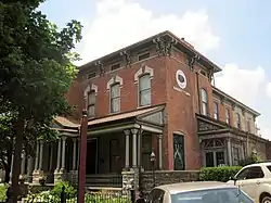 The Howard K. Weber House is a historic house located at 925 South 7th Street in Springfield, Illinois. While the house was built in the 1840s, its current design comes from a series of additions and renovations which began in 1878. However artifacts discovered in the basement date around the 1820s. Howard K. Weber, a prominent local banker, started this renovation process shortly after buying the house. The house's new design was primarily Italianate, as the style was then nationally popular; its influence can be seen in the asymmetrical plan, the low hip roof with a bracketed cornice, and the arched windows. The house also exhibits a late Victorian influence in its more detailed elements, particularly the first-floor bay windows and the Gothic moldings on the second floor.[2]