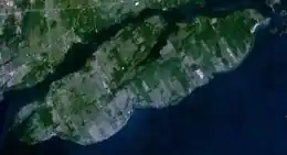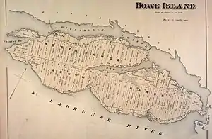 Howe Island was originally named Ka-ou-enesegoan by local Iroquois and later Isle Cauchois after its first French owner Jacques Cauchois who took possession in 1685. In a proclamation by the Lieutenant Governor of Upper Canada John Graves Simcoe on 16 July 1792, the island was renamed from Isle Cauchois to Howe island;[1] it was named for William Howe, 5th Viscount Howe, a British officer who served under General James Wolfe at the Battle of the Plains of Abraham during the Seven Years' War, and first appeared on a map in 1818 following a survey by Captain (later Vice Admiral) William Fitzwilliam Owen of the Royal Navy.[2] There is some evidence (received by oral tradition) that it was at one time also called St. John's. There is no evidence of any permanent habitation until 1810 by a man named William Casey. In the following four decades successive waves of settlers brought many of the island's long standing families who still live or own land there.